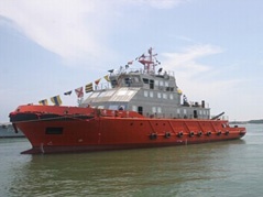 2014年6月5日,由秦皇島北方船舶機械進出口有限公司參與配套的青島消防船項目--“青消一號”順利下水。 船東:青島公安消防局 船廠:威海興海船廠 設(shè)計院:武漢武船海洋工程船舶設(shè)計有限公司